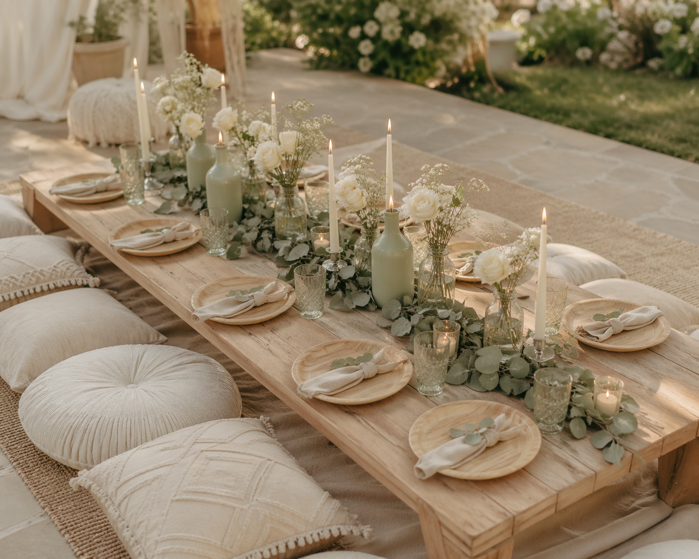 A soft, neutral palette of layered beige tones creates an effortless, romantic setting, accented with:
